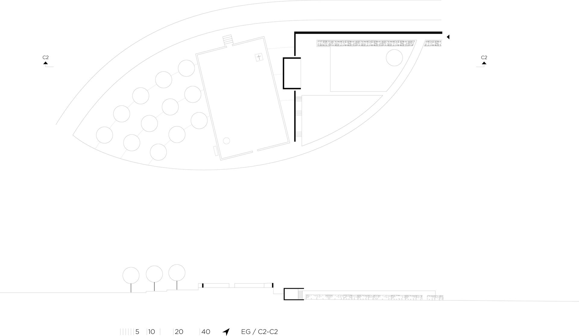 | Raumprogramm | Aussegnungshalle, Flächen für Kinder- Familien und Urnengräber |