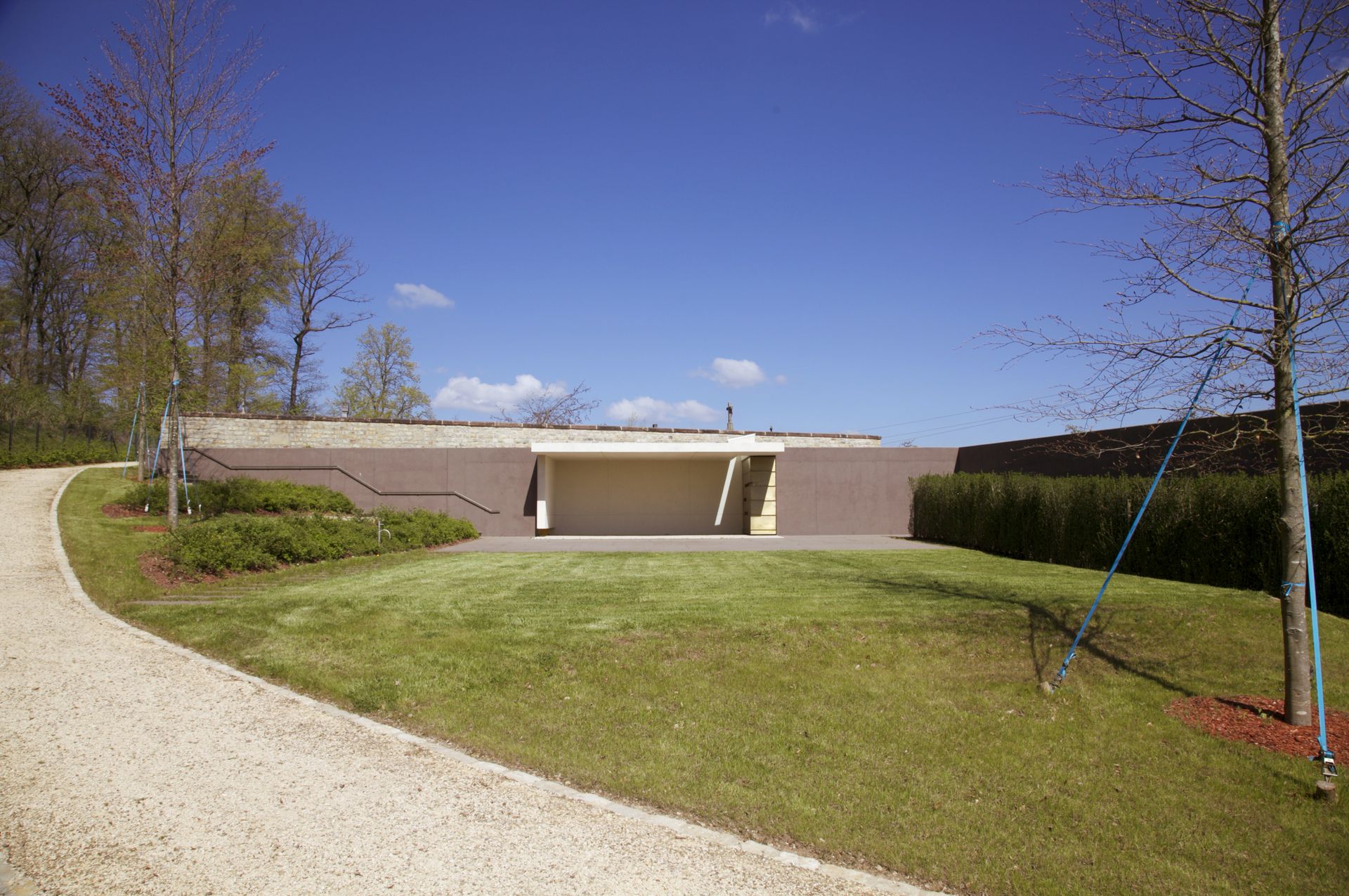 Der bestehende Friedhof der Gemeinde Mompach wurde aufgrund der demografischen Entwicklung der Gemeinde mit einer Aussegnungshalle und neuen Grabstätten erweitert. Die Planung eines neuen Friedhofs ist keine einfache, aber eine sehr schöne Aufgabe. Bereits bei der ersten Ortsbegehung wurde die Besonderheit des Orts deutlich - den Wald im Rücken, auf der einen Seite die Weite der Landschaft, auf der anderen den Ort Mompach und umgeben von einer beeindruckenden friedlichen Stille.