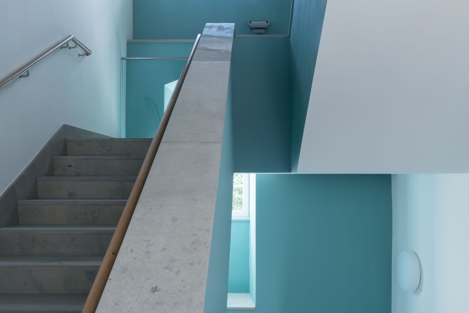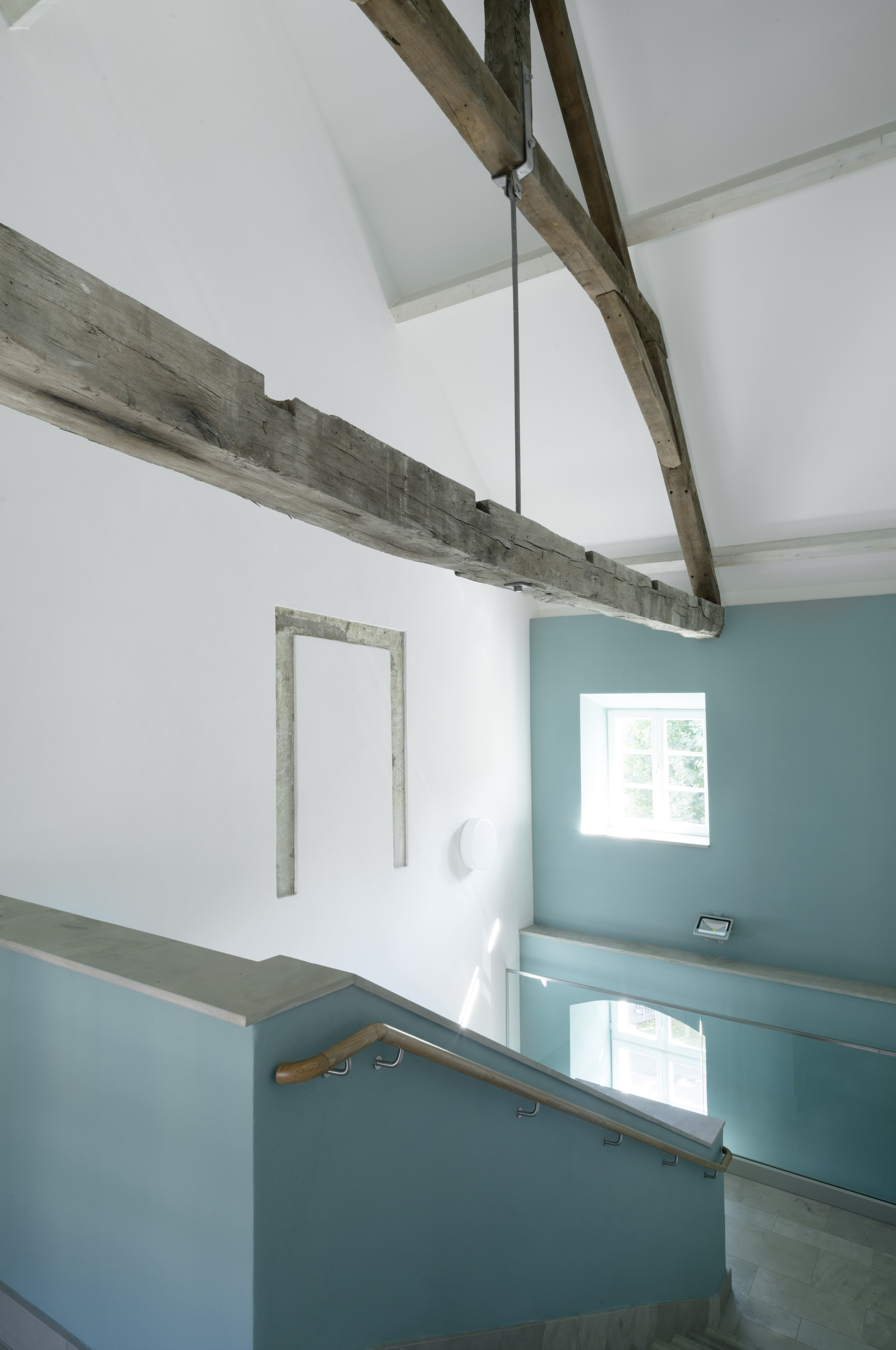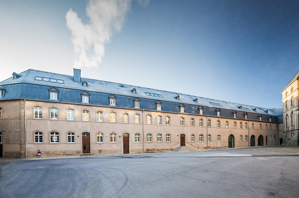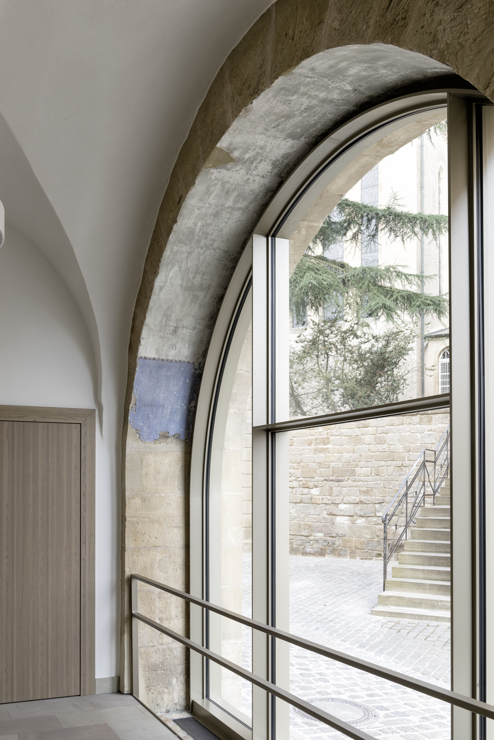 Im staatlichen Gymnasium, dem spätbarocken Gebäudekomplex der ehemaligen Echternacher Abtei, wurde der Flügel „Aile Gendarmerie“, der bis dahin mit Büros und Wohnungen der Gendarmerie belegt war, für den Schulbetrieb umgebaut. In diesem 90m langen Gebäudeflügel entlang der Rue du Pont wurden 13 Klassenräume mit Nebenräumen für Kunst-, Sprach- und naturwissenschaftlichen Unterricht sowie Büros und Räumlichkeiten für die Schulmedizin untergebracht. Die Volumetrie und die Außenwände des Gebäudes wurden erhalten, so dass das äußere Erscheinungsbild des Flügels sich in den Gesamtkomplex der ehemaligen Klosteranlage einfügt. Der Innenbereich wurde komplett entkernt um mit einer neuen Strukturierung eine optimale Funktionalität für die geforderten Flächen zu erreichen. Durch die schmale Breite des Gebäudeflügels nehmen die Klassensäle die gesamte Gebäudebreite ein, werden dadurch von zwei oder drei Seiten natürlich belichtet und erhalten eine helle und freundliche Atmosphäre. Auch ein durchgängiges Farbkonzept, das sich in den Klassenräumen wie auch in den Treppenhäusern findet, unterstreicht die einladende Aufenthaltsqualität.